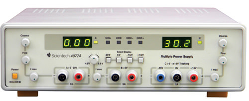 Scientech 4180 DC Power Supply is designed as a Constant Current (CC) and Constant Voltage (CV) source for use in laboratories, industries and field testing. With compact size, light weight and low Power loss, it provides DC output voltages for Analog and Digital testing.