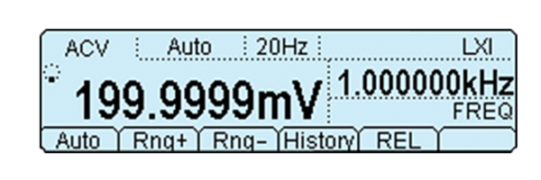 When measuring the voltage or current of the AC signal, the frequency can also be measured. At this time, the voltage or current is displayed on the main display screen and the frequency is displayed on the secondary display screen.