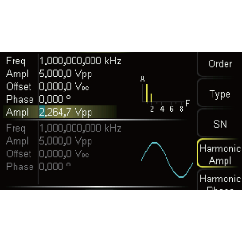 It can stack the specified frequency and percentage amplitude waveform on the basic wave for output; when the channel tracking function is turned on, all parameters of the dual channel can be updated according to the user’s configuration at the same time