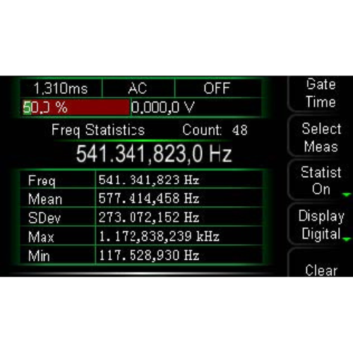 It provides 7-bit frequency meter measurement function, which can measure the frequency, period, duty cycle, positive pulse width, negative pulse width and other parameters of external input signal, and supports the statistics of measurement results. The frequency meter can work simultaneously with the dual channel output.