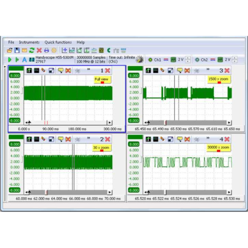 The Handyscope HS5 is delivered with the versatile multi channel oscilloscope software, which transforms the